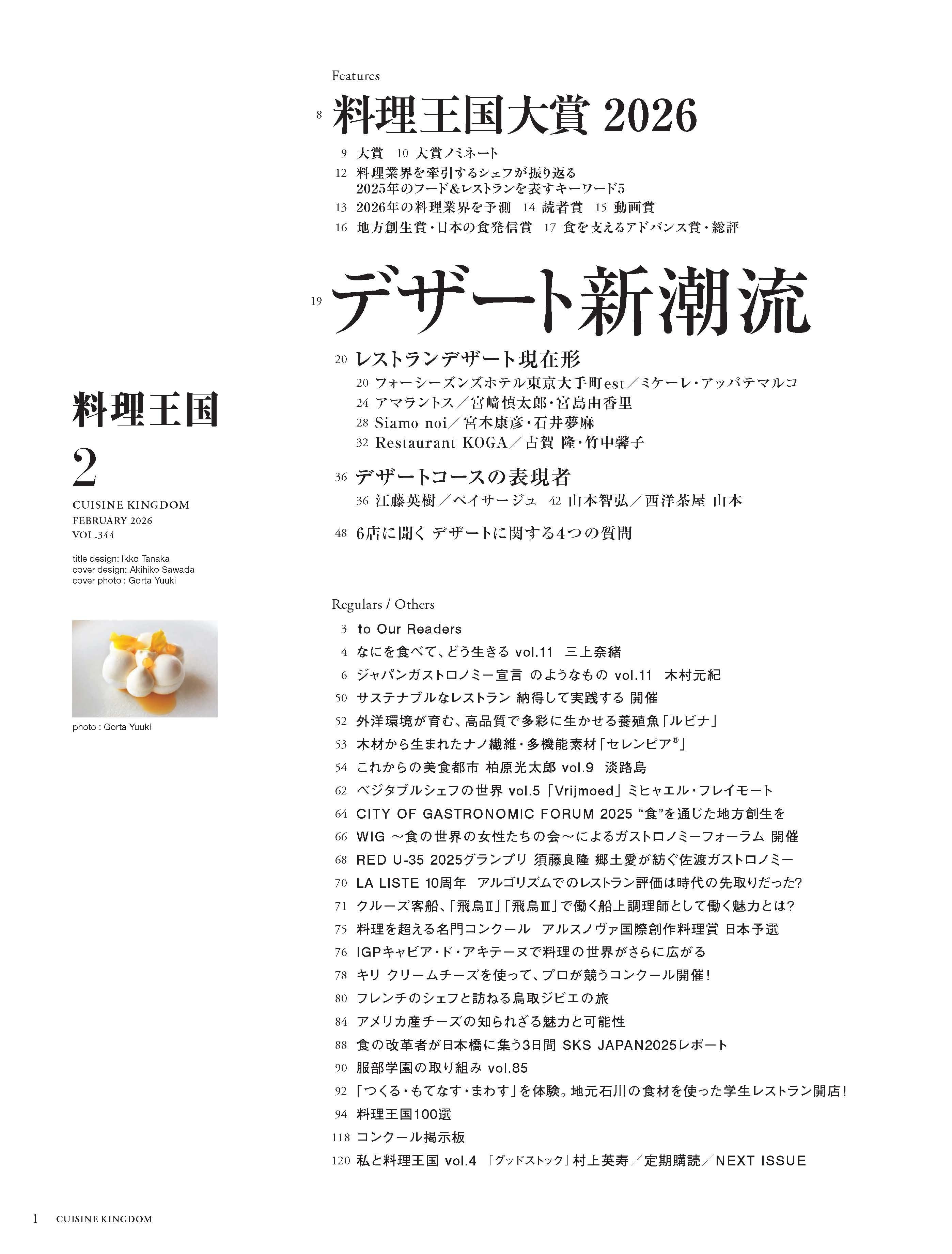 2026年の始まりに各賞を発表すると共に、今年の料理界の行方を予測します。